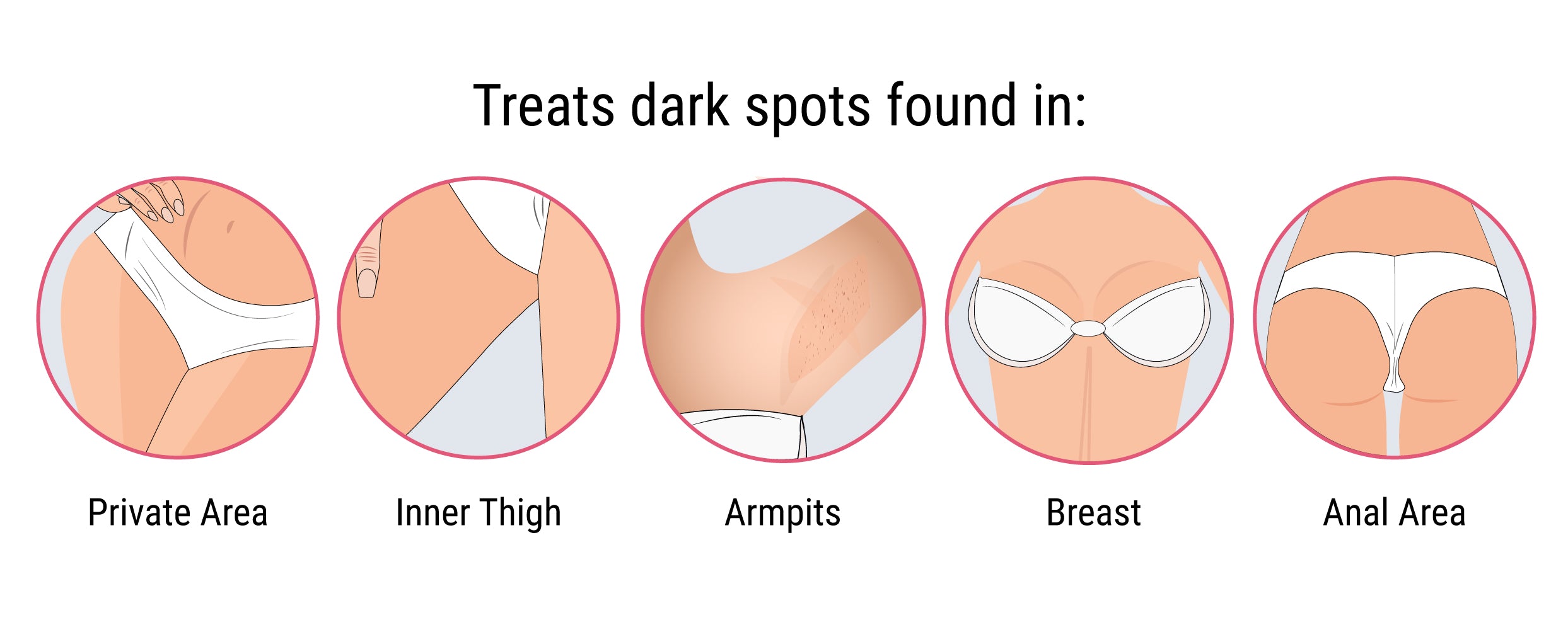 A dark spot correcting cream specifically formulated with powerful brightening ingredients such as Niacinamide, Alpha Arbutin, Kakadu Plum, Lemon and Hyaluronic Acid to fight dark spots, hyperpigmentation and uneven skin tone in your most intimate area.